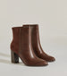 A stylish staple bootie to pull your look together! The bootie features a mixed faux suede and faux leather material. a pointy toe. a tall stacked block heel. and an inner zipper closure. Complete with your favorite cardigan and high waist jeans.