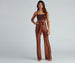 Bring the chic vibes with these fab high-rise pants. They feature a tie-front accent. wide pant legs. and a form-hugging fit. The pants are composed of a stretchy knit fabric with a pretty sheen. Style these pants with a crop top and clear mules.