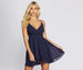 Navy Dress: Model is 5'8" with a 34" bust. 25" waist and 34" hips. She is wearing a size small.