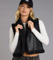 Cozy meets edgy—this cropped vest brings major street-style vibes with faux leather. soft shearling trim. and a boxy cut made for layering. Perfect for tossing over long sleeves or hoodies when the temp dips. but your outfit still needs a stylish layer.
