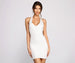 Bring the dazzle with a sequin dress that elevates your special evening. The dress features a halter neck. sequins. an open back. and a mini-length silhouette. The dress offers a form-hugging fit with minimal stretch. Complete look with rhinestone heels.