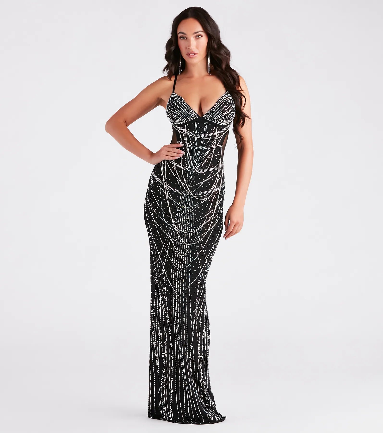 Ciara Iridescent Rhinestone Draped Formal Dress