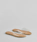 You'll be obsessed with these flat sandals perfect for styling on rotation! They feature an almond toe. a clear PVC strap. and a flat sole with edge trim on faux leather material. Complete the look with a trendy crossbody purse.