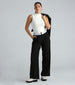 Show off your cool-girl confidence in these contrast waist trouser pants. They feature a high-rise waist with a trendy exposed waistband design. pleated detailing at the front. dual side pockets. a single back pocket. and a straight-leg silhouette with a relaxed fit. Style these trouser pants with a crop top and ankle booties.