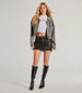 This trendy sleek faux leather mini skirt features a mid-rise waist with a front button closure. cargo-style flap pockets. and a short-length hem with a form-hugging fit. Pair with a graphic tee and knee-high boots for a cool-girl look.