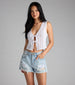 Add a stylish twist to your look with this crochet vest. Featuring a delicate crochet pattern and a flattering tie-front closure. this vest offers both comfort and charm.