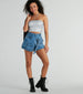 This wrap-front denim cargo skort has the coolest deets to level up your looks! Made from a structured non-stretch denim fabric. the skort features a high waist. a faux wrap-front overlay with an asymmetric design. and fitted shorts. The dual buckled straps and flap pockets add that trendy cargo design. while the faux zippered pockets give that edgy vibe. Includes a hidden front zipper and button closure for effortless styling. Complete your 'fit with a graphic tee and combat boots.