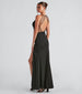 Show some skin. Cornelia is all class with sultry appeal in her sleeveless. plunging V-neckline. built-in padded bust. princess seams along the bodice. and open-back allure with caged-strap detail. Her figure-flattering. A-line silhouette leads to a floor-length hem with a sexy front slit perfect for showing off a pair of glam heels to complete your dressy look.