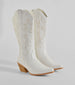 Show your love for country style with these under-the-knee cowboy boots. the perf addition to your fave 'fits. Designed with trendy western-style embroidery. they feature a classic pointed toe. an inner zipper closure for effortless on-and-off styling. and a stacked block heel for comfortable wear. Pair with a flowy short dress for a country concert!
