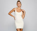 Slip into a cozy mini dress that keeps you on trend. babe! The dress features a sleeveless scoop neckline. spaghetti straps. and a mini-length silhouette with a ribbed hem. The dress is composed of an eyelash knit fabric that offers a form hugging fit with a moderate stretch. Complete look with the matching cardigan.