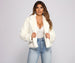 Cuddle up in this cute jacket to channel those cozy vibes. The jacket features a collared neckline. long sleeves. lined side pockets. and a cropped hem. The jacket is composed of a faux fur fabric that offers a relaxed fit. Complete the look with crop top and mini skirt.