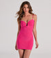 Strut looking curvacious in this mesh mini dress for your next night on the town! Designed from form-hugging mesh fabric. this dress boasts a plunge-wired sweetheart neckline with a bar trim. adjustable spaghetti straps. and a bodycon silhouette that flatters your figure. Complete the look in sleek stiletto heels.