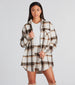 Channel only the cutest vibes in this trendy plaid long shacket! It features a collared neckline. long sleeves. a complete button-down front. a single chest pocket. and a long-line hem with a relaxed fit. The plaid printed lined woven fabric has a minimal amount of stretch. Complete the look with the matching skort and over-the-knee boots.