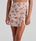 This adorable ditsy floral mini skirt will be the cutest style pick of the season! It features a high-rise waist. front ruched detailing leading to a small slit. a short. fitted silhouette. and an all-over ditsy floral print. Complete the look with a basic bodysuit and chic mules.