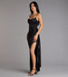 Sleek and sophisticated. the Danika satin gown features a draped neckline and a sultry high slit. Finished with delicate straps and a figure-skimming silhouette. it's the ultimate plus-one for nights that call for pure elegance.