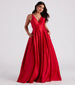 Channel timeless elegance in a modern style in the breathtaking Darcie satin ball gown destined to be your date for prom. galas. and formal ceremonies! She stuns in a sleeveless V-neckline. a lightly padded bust. adjustable shoulder straps. a flirty chiffon tie-back design. an A-line silhouette. hidden side pockets for keeping your hands warm. and a floor-sweeping hem. The ball gown is composed of a sleek satin woven fabric with multi-layers of tulle and woven lining creating a voluminous effect. Complete the look with a charming rhinestone bracelet.