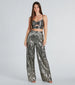 Dare to impress in these metallic plisse wide-leg pants! Featuring a high-rise waist and a trendy wide-leg silhouette. you'll be sure to turn heads. Crafted with a shimmery metallic plisse knit fabric. Complete the look with the matching crop top for a holiday party.
