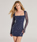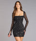 Dazzling Glam Long Sleeve Rhinestone Mesh Mini Dress