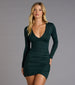 Bold meets sleek—this bodycon mini dress serves up long-sleeve polish with a curve-hugging ruched fit. Perfect for brunch. date nights. or any occasion when you want to look unforgettable!
