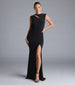 Chic will be your mood in the Deirdre mermaid dress accented with a twist-front cutout at the neckline and a high-cut front slit to show some skin. The ruched draped overlay at the waist offers a flattering design you'll love.
