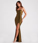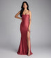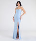 Flattery will get you everywhere in the Delia formal long dress that boasts a flattering mermaid silhouette with a high front slit for effortless allure all evening!Â