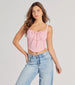 Level up your look with this lace trim corset top. Featuring a lace scoop neckline. adjustable straps. and a smocked back. it's all about those dreamy details.