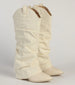 Embrace your fashion diva status with these trendy denim fold-over western boots! They feature a knee-high height with pull tabs on each side for easy slip-on styling. a slouched denim fold-over design that extends from the knee to the heel. and a pointed toe and block heel that peeks out from under the denim overlay. The boots feature a faux leather material with western-style stitching. Complete your look with a mini dress and hoop earrings.