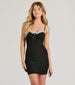 The heart wants what it wants and you need this bodycon mini dress! With adjustable spaghetti straps and a sweetheart neckline trimmed with delicate lace and a satin ribbon bow. this dress adds a touch of sweetness while flattering your curves in the bodycon fit. Complete the look in stiletto heels and a chic mini purse.