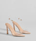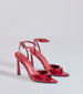 Looking for the limelight? It will always find you in these faux leather heels! They feature a sleek pointed-toe with a curved strap. an adjustable ankle strap with buckle closure. and a stiletto heel and cushioned insole. Complete the look in a sleeveless midi dress for a chic style.