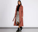 Bring the trouble in a long trench coat! This lightweight coat is designed with a collared neckline. and a double breasted front with marble buttons that lead down. Jacket has long sleeves. and a a belted waist. and traditional pockets. Hem leads down to below the knee and trench is composed of a polyester material that offers a form fitting silhouette with moderate stretch.