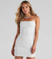 You'll look like such a dream in this crepe mini dress designed to flaunt and flatter your curvaceous figure! Featuring a sleeveless. square neck. sleek bungee spaghetti straps. and a sultry open-back with dual strap detailing. Complete the look in rhinestone mules for a dressy event.