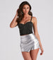 You'll be dripping in rhinestones and showcasing all the glam vibes in this cropped bustier! It features a sleeveless sweetheart neckline with a structured and padded bust. adjustable spaghetti straps that can be removed to make the top strapless. sparkling rhinestone and beaded embellishments down the front. and a cropped fitted hem. Style with a faux leather mini skirt and clear heels for your next night out.