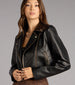 Sleek. structured. and never out of line. This faux leather moto jacket is your go-to layer for instant attitude—whether you're pairing it with shorts. jeans. or a bold red lip for nights out. concerts. or everyday looks.