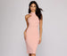 It's an elegant night out! This perfect midi dress features a racer front with double halter and shoulder straps. a form hugging bodycon fit and a midi length. Dress includes a hidden back zipper closure. Elaine is composed of a lined crepe fabric that offers a from hugging fit with slight stretch. Includes an additional mini skirt length knit lining.