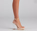 Elevate your style with lucite heels that create a head-turning moment! The heels feature an open back. a clear adjustable ankle strap. an open square toe with a clear strap over the toe. a wide platform. and a clear lucite block heel. Complete look with an LBD.
