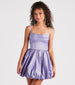 Create an adorably-stylish look for parties in the Ellie sleeveless bubble hem skater dress. She features a square-shaped cowl neckline with pleating. a built-in padded bust. adjustable spaghetti straps for a customized fit. a high waist with a corset seam design. a short pleated skater skirt with a trendy bubble hem. and a fit and flare silhouette. The woven taffeta fabric includes a full knit lining. Complete the look with rhinestone fringe earrings and platform heels.