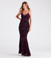 In the Eloise formal mermaid dress. there are two things to toast for. the newlyweds and how amazing you'll look! She features a sleeveless V-neckline. spaghetti straps. an eye-catching lace-up back design. and a form-hugging mermaid silhouette that leads to her floor-length hem. The formal dress is composed of a flocked velvet patterned mesh fabric with a stretchy knit lining. Style with dainty fringe earrings and heels for a wedding or banquet!