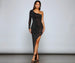 Bring the shine to your event with a formal dress that dazzles under the spotlight. The dress features a one-shoulder neckline. a fitted long sleeve. sparkling heat stones throughout. a bold high side slit. and an A-line silhouette. The dress is composed of a lined mesh fabric that offers a form hugging fit with a moderate stretch. Complete look with rhinestone heels.