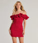 Ember Off-The-Shoulder Ruffle Glitter Party Dress