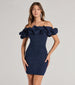 Every jaw will hit the floor when you wear the Ember glitter party dress that flaunts a ruffled off-the-shoulder neckline for dramatic flair and a sexy bodycon fit!