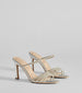 Hit the scene in these rhinestone stiletto heels. With a multi-strap design and luxe cushioned insole. these beauties will have you strutting with confidence and sparkle.