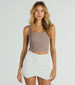 Update your essential basics with this sleeveless tank top to dress up or down! The rib knit top showcases a flattering square neckline with shoulder straps and a fitted crop hem perfect for flaunting your figure. Complete the look with a trendy skort and jacket.