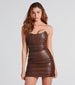 Create a prize-worthy look in this faux leather mini dress for your next night on the town! The strapless short dress features a corset bodice with flexible boning that helps to snatch your figure. a bodycon silhouette. a mini-length hem. and a mesh overlay for an elevated style. Complete the look in platform heels.