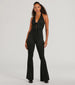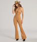 This faux suede jumpsuit is an attention-worthy look everyone will love! Featuring a halter V-neckline with a tie closure and a trendy lace-up front. this jumpsuit hugs your hips and flares out at the hem for a flattering fit. Complete the look in cowboy boots for a country concert or bar!