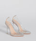 Your wish for a pair of glam stiletto heels has come true! They feature a clear PVC closed design. a pointed-toe. stiletto heel. and mini rhinestone embellishments for the perfect sparkle. Complete the look with a dainty bracelet.