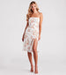 Fall for these florals! Bare your shoulders in this sleeveless midi dress featuring a square neckline with non-slip grip lining. adjustable spaghetti straps. a form-fitting silhouette. and a flirty front slit accent. Complete the look in braid strap mules for a birthday brunch.