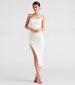 Your new favorite midi dress for looking stylish and cute! It features a sleeveless square neck. sleek bungee spaghetti straps. a bodycon silhouette. and a side slit with a ruched drawstring that lets you customize the fit. The midi dress is composed of a rib-knit fabric with lining and plenty of stretch. Complete the look in trendy flat sandals for a bridal shower or brunch!