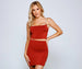 You'll be feeling so fine and fierce with a crop top that brings the luxe! The top features a sleeveless square neckline. rhinestone embellished spaghetti straps. and a cropped hem. Complete look with the matching mini skirt.
