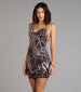 Wild but make it glam—this mesh halter mini dress brings the heat with a draped cowl neckline. hoop hardware details. and a curve-hugging fit. The leopard print keeps it fierce from every angle.
