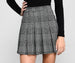 Keep it flared and flirty with a skater skirt that creates a twirl-worthy moment! The skirt features a houndstooth pattern. a high-rise waist. pleated body. and a mini-length silhouette. The skirt is composed of a knit fabric that offers a form hugging fit with a moderate stretch. Complete look with a crop top and lug booties.